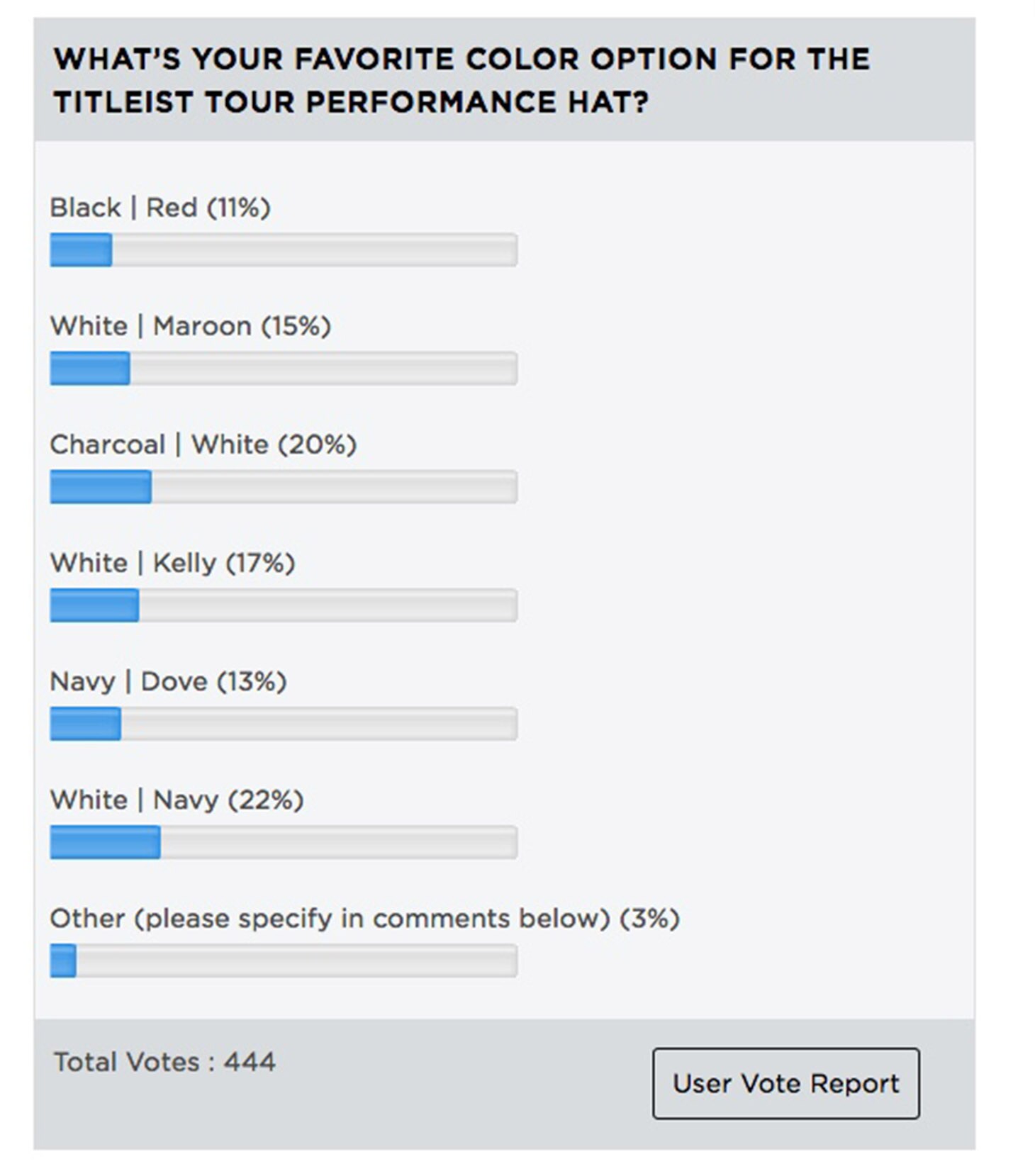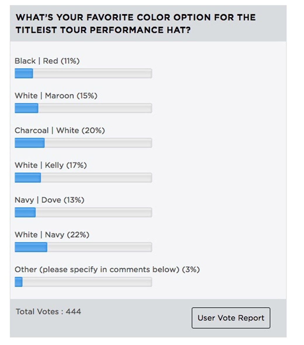 We'll be placing an order for 2018 limited edition TT headwear based on your votes. We'll let you know as soon as the new colors arrive and how you can enter for a chance to win the model of your choice in an upcoming exclusive Team Titleist sweepstakes. Thanks to everyone for your feedback!