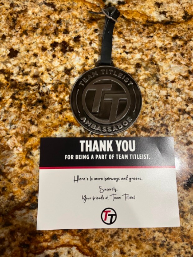 So appreciative of the TT bag tag received today. I’ve been playing Titleist clubs for the past 16 years and I’m excited to display the tag on my Titleist bag.