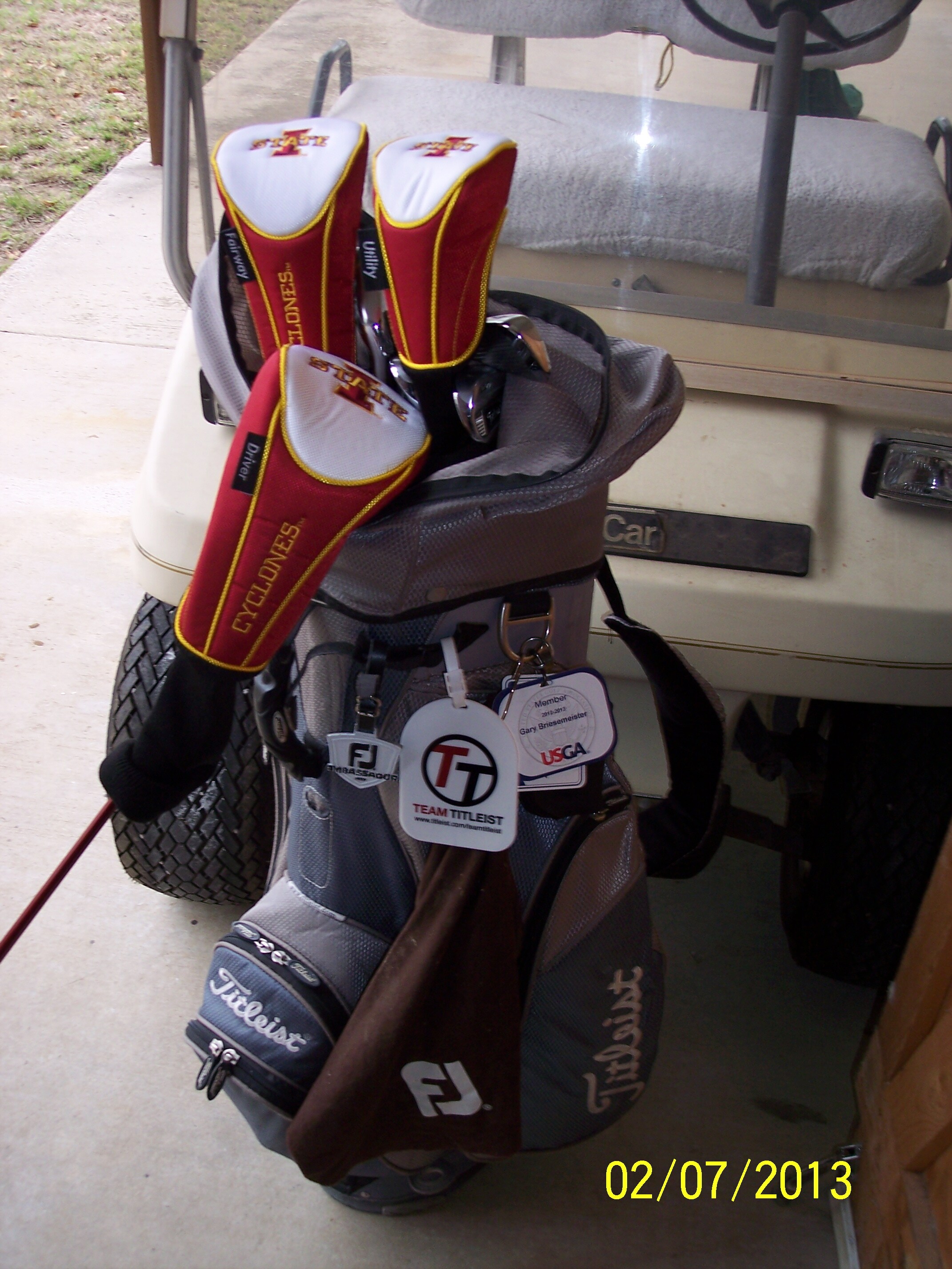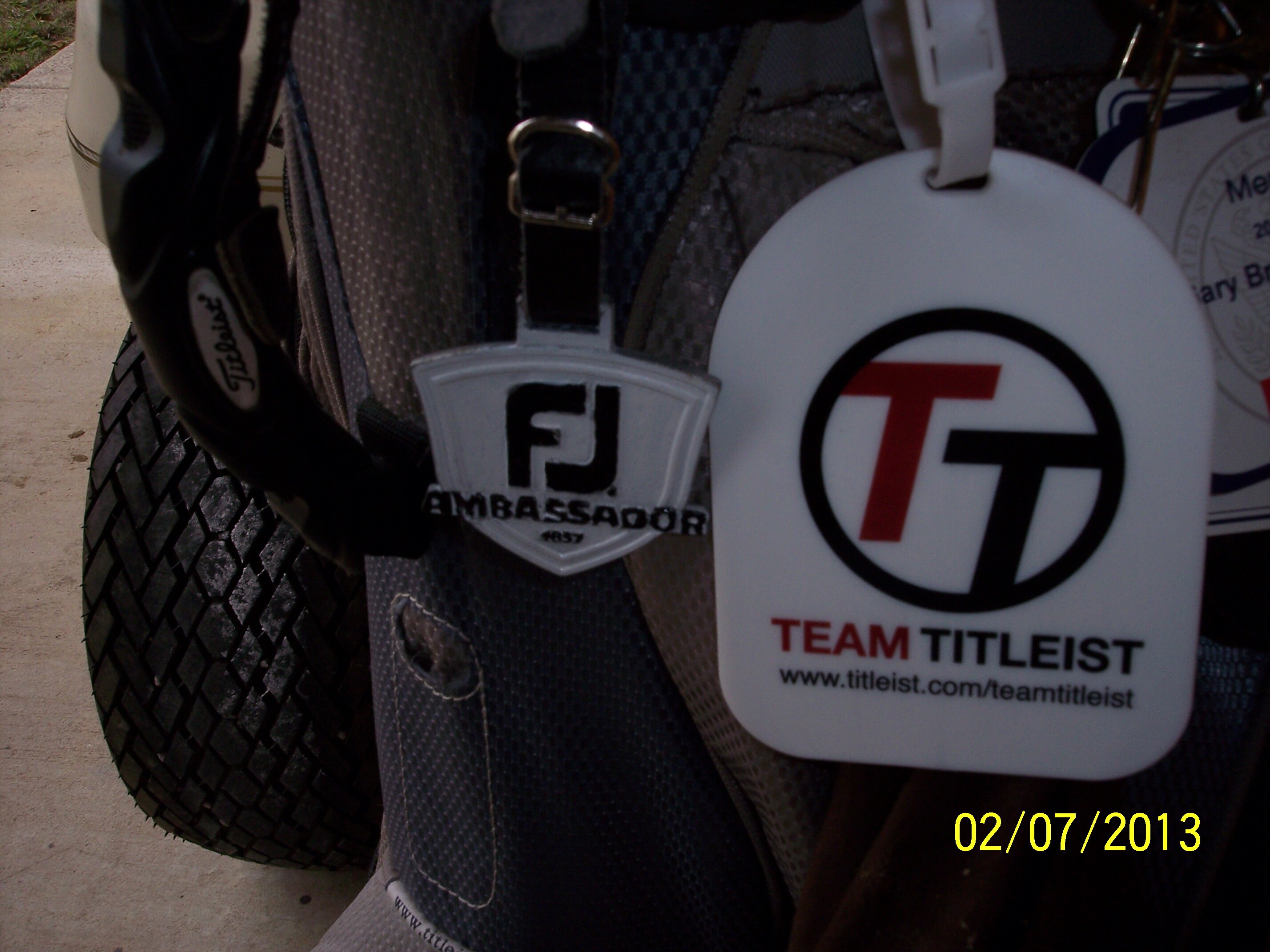 I have 3 bag tags1 Wake Forest, 1 USGA and another to remind me of a golfing friend that passed away last year, it is from his favorite school, Clemson. 3 towels1 Titleist,1 Wake Forest and another from a tournament some friends and I won, 2 Titleist Valuable Pouches,1for balls, ball markers and repair tools and another for my money,keys and other stuff when I play. I have a Wake Forest umbrella also.
