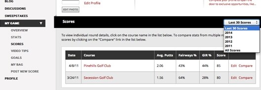 You can delete scores, or make adjustments if you mistakenly enter incorrect information, by navigating to SCORES under the MY GAME section of Team Titleist.