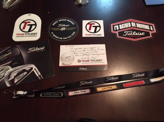 I love seeing equipment photos from loyal Titleist members. I do hit a Tayor Made driver (sorry) and also use Adizero shoes (when the FJ Dry Joys are wet…double sorry) but again, please share photos of of your gear. Also, I have included a surprise package photo