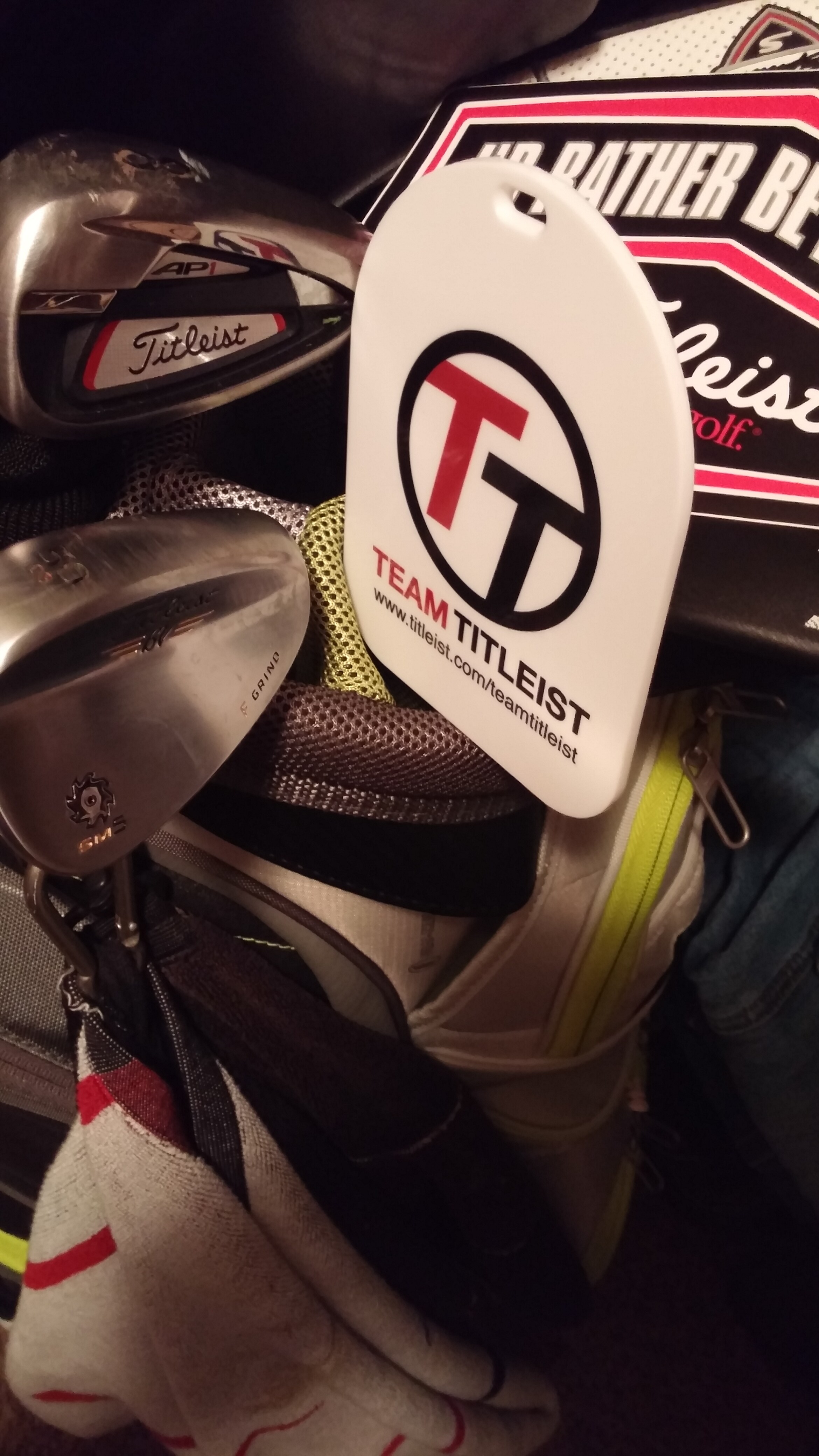 Great bag tag. What id behind it? Is that an "I'd rather be driving a Titleist" sticker? I have never seen one in that shape/design.