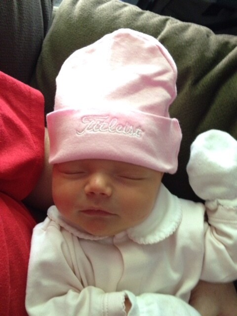 Congratulations! Beautiful baby girl. Love the pink Titleist beanie!