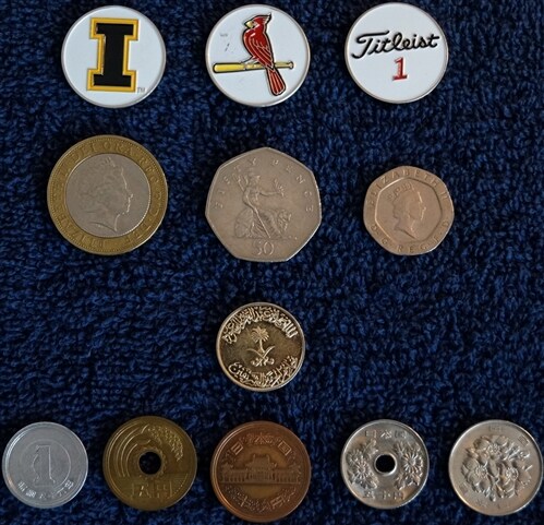 While i was away in FL last week, i was asked by a good friend to pick up some ball markers from the courses i was playing at. So i started thinking, do i have a favorite ball marker that i game with? I did have one last summer and lost it, it was an Ecuadorian coin from when i visited Ecuador a few years ago. Something about the coin that i liked and kept it. Now I need a new one...