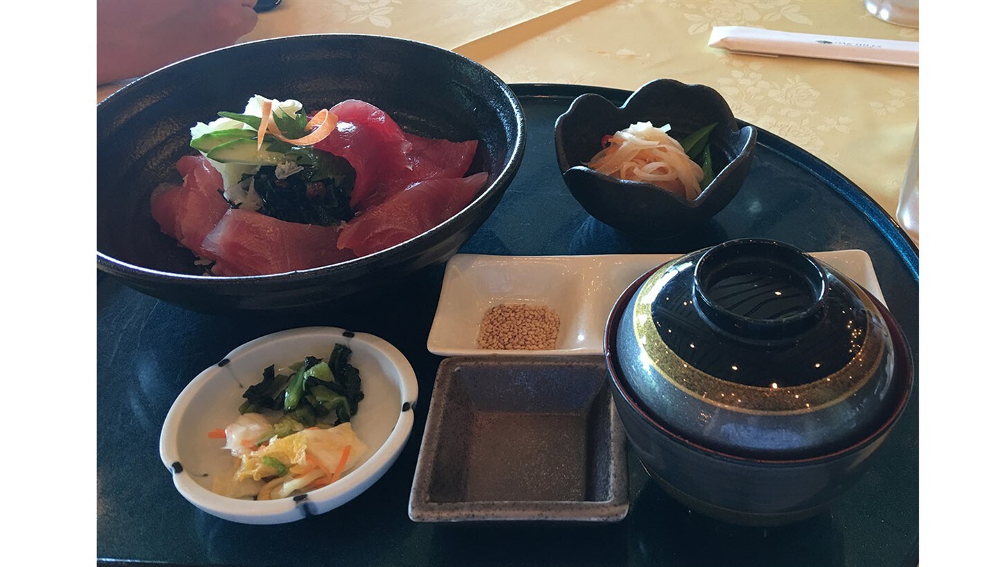 At lunch, groups typically take a 15-20 minute break and it is customary to enjoy a shared meal with your playing partners such as this: steamed pork, a few varieties of kimchi, and dried fish in a spicy local sauce.