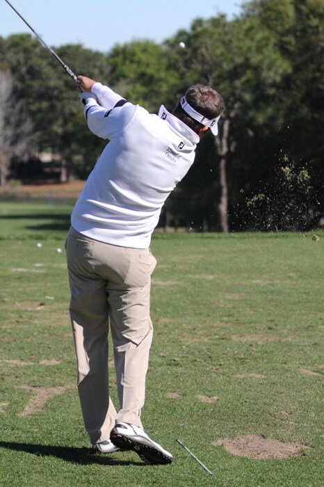 And his follow-through sends his new 2013 Pro V1x toward his target.