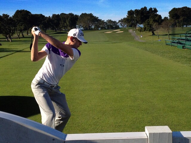 Titleist Brand Ambassador Brendan Steele takes aim on the first.