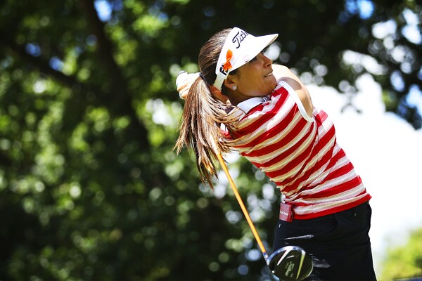 Pro V1x loyalist MariaJo Uribe watches her New 2013 Pro V1x golf ball find the fairway in her second round.