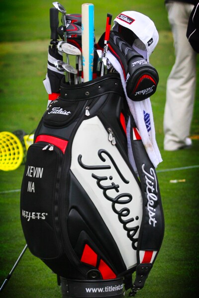 The bag of Titleist Brand Ambassador Kevin Na is filled with Titleist equipment, featuring AP2 (712) 4-PW, and a 913 D3 9.5 driver.