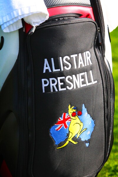 Aussie pride on the bag for Titleist Brand Ambassador Alistair Presnell. Inside the bag is the new Pro V1x golf ball, a 913 D3 7.5 driver, 913 F 13.5, and 913 H 17, and MB (712) 3-9 irons.