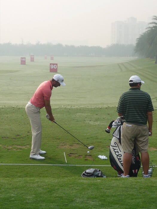 European Tour Rookie of the Year and Titleist ambassador Ricardo Santos hits the range in the early morning mist