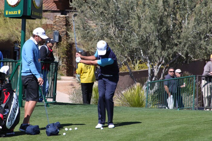 On the short game practice area, we find Titleist Brand Ambassador Scott Piercy working on his technique.
